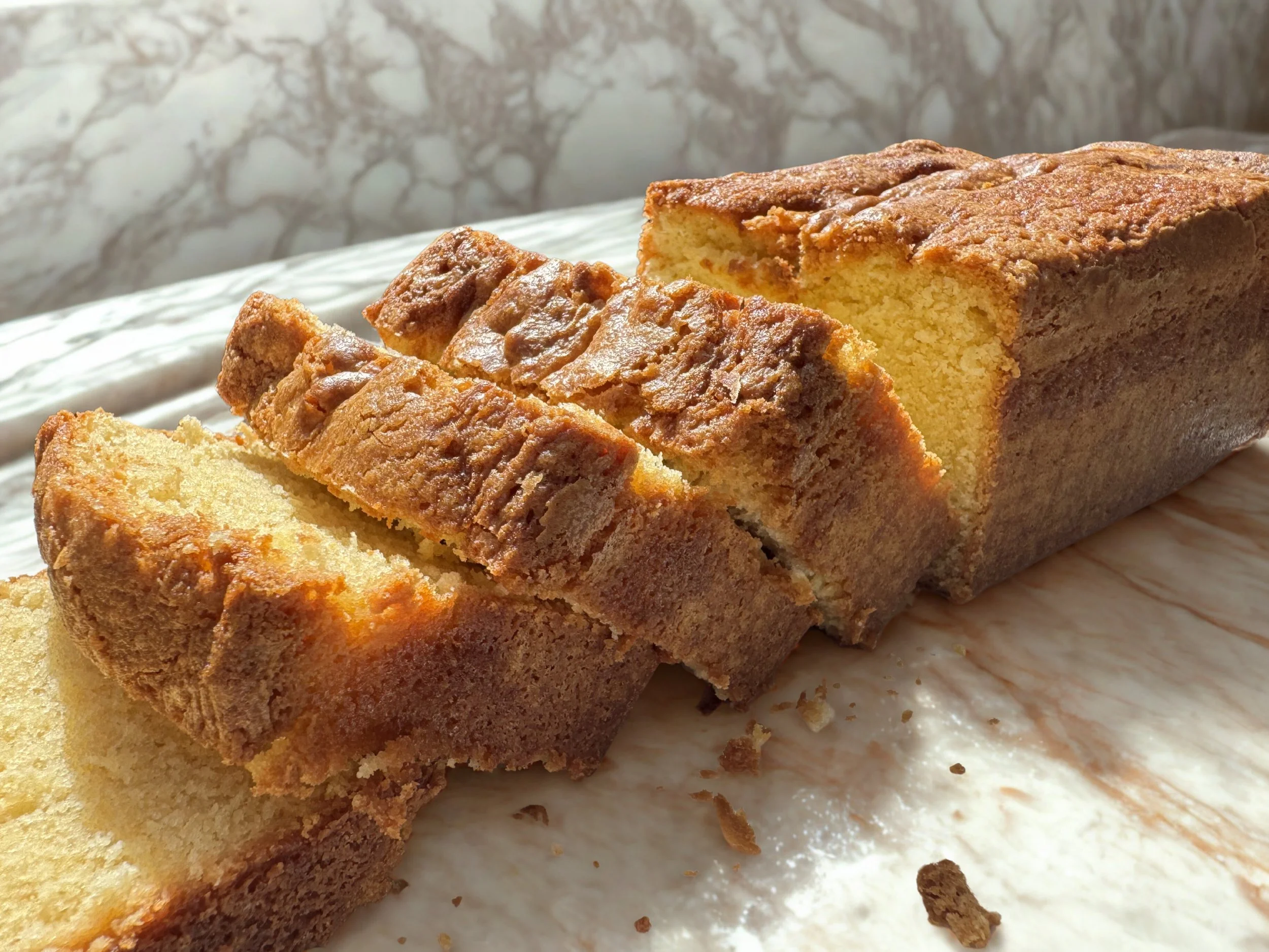 A crumbly, dense, moist, delicious, organic and perfectly baked Pound House Bakery One!